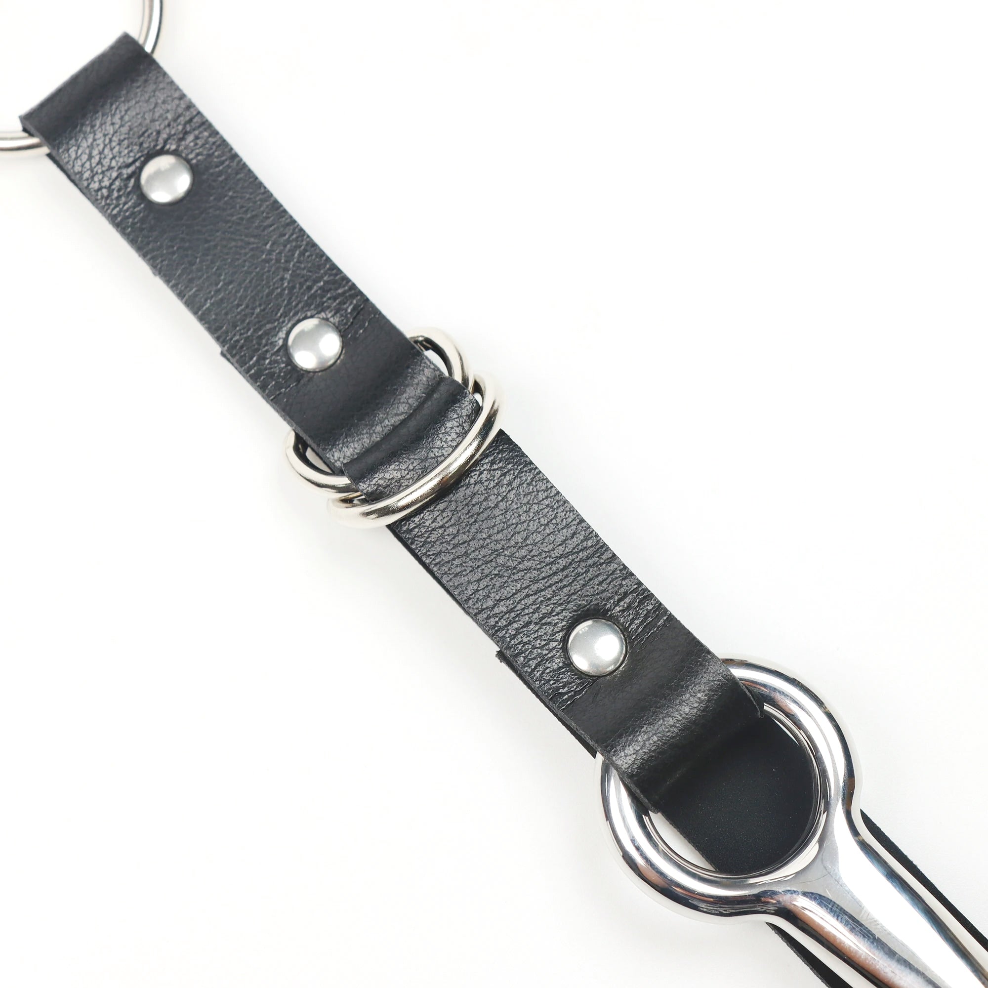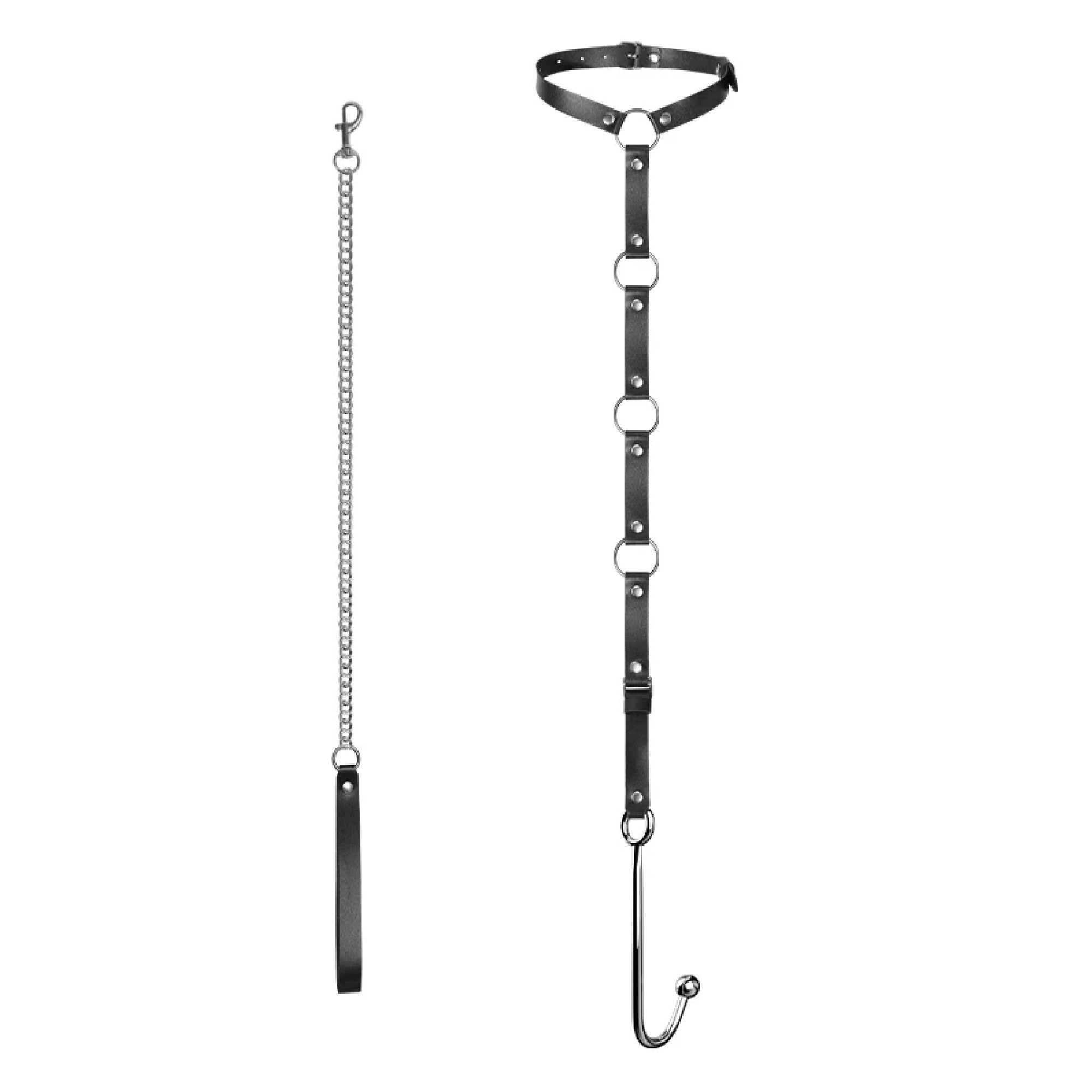 The combination of materials creates a captivating contrast that is both electrifying and intoxicating. The soft leather caressing your skin and the hard metal of the anal hook inside you will send shivers down your spine. Another anal hook can be used as a decorative element on the collar, adding an extra touch of allure.