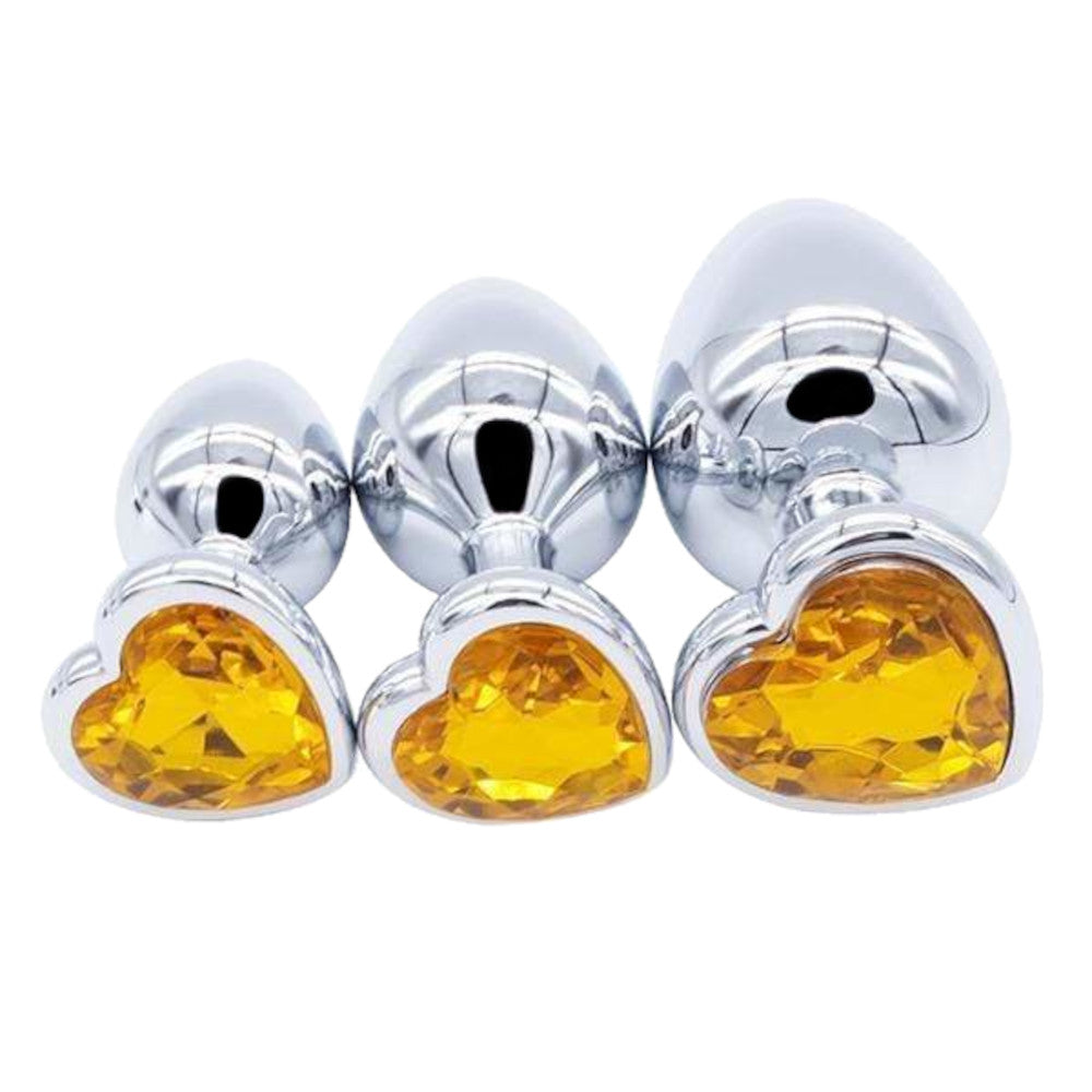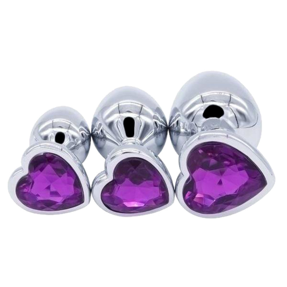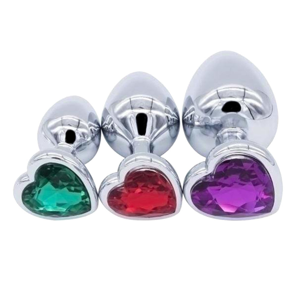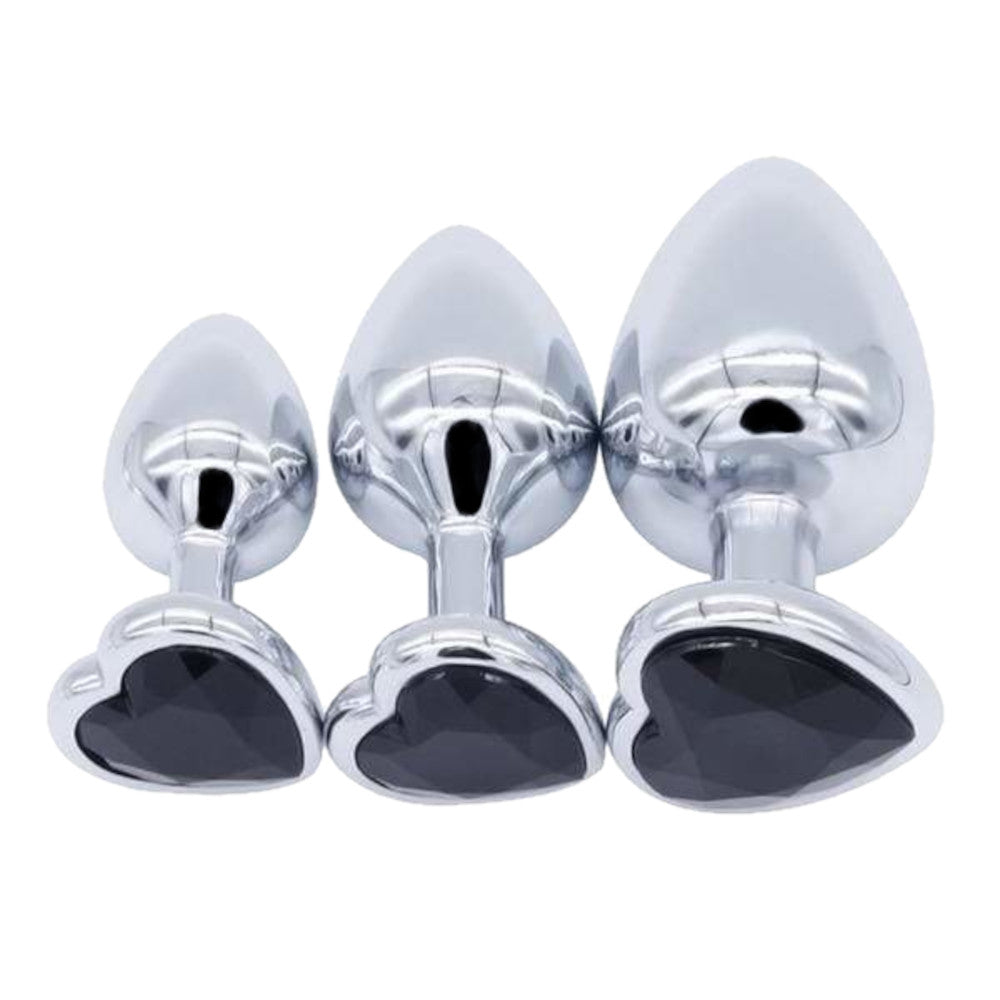 Elevate your sensual experience with this luxurious 3-piece jeweled stainless steel anal plug set, designed for comfort and pleasure.