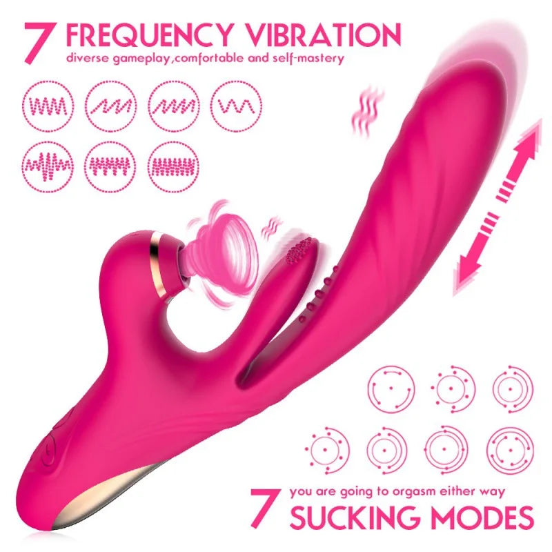 Discover extreme pleasure with the Sensual Delight Rabbit, a dual-action vibrator featuring tapping and flapping clit sucker functionality for intense stimulation and orgasms.