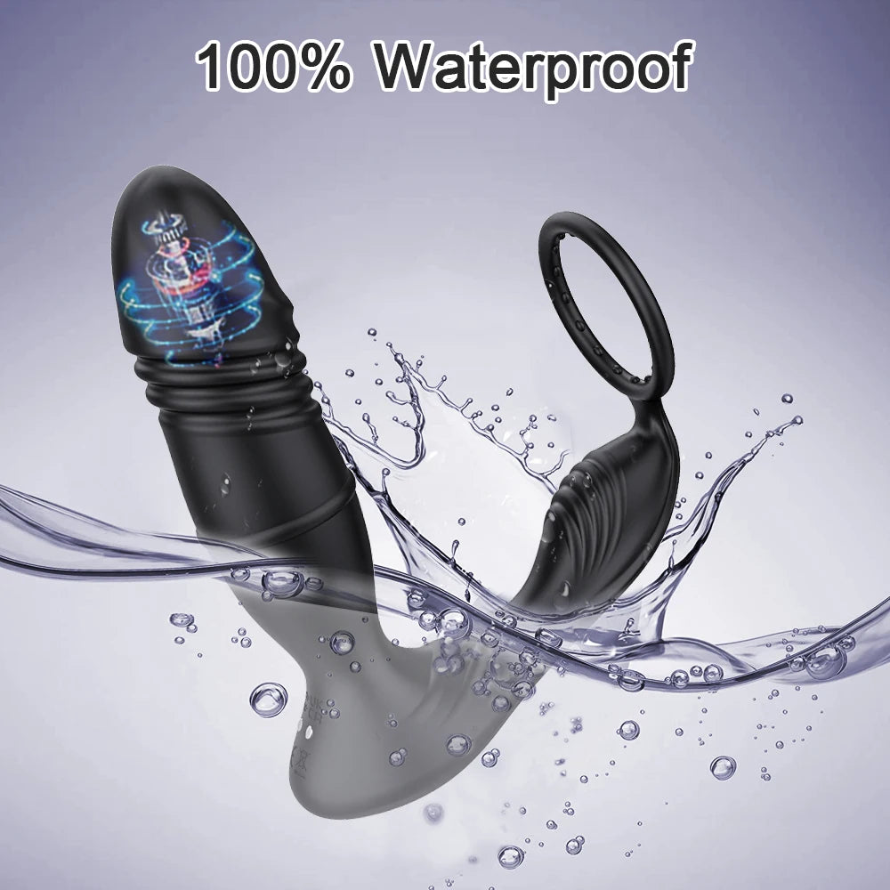 - Ergonomic Excellence: The rounded head ensures seamless insertion and targets the prostate with precision. The spiral waist design, adorned with a metal ring, adds an air of sophistication. The thrusting pleats stimulate the anus, while the pleated base offers tantalizing pleasure to the perineum and testicles. An attached penis ring keeps the massager securely in place.