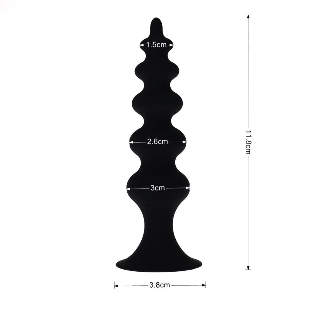 This tantalizing anal plug boasts a mesmerizing tower-shaped design. Its semi-pointed tip ensures seamless insertion, while four beads attached in succession generate an electrifying surge of excitement that will send shivers down your spine. Arranged in ascending order from tip to base, these beads are expertly crafted to tease and titillate your senses, propelling your pleasure to unimaginable heights. The flat, circular base acts as a reliable anchor, preventing the plug from getting perilously lodged deep inside the anus. Available in an alluring black, it exudes an air of mystery and sophistication that will leave you craving for more.