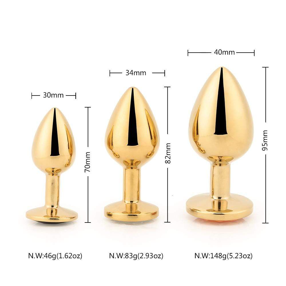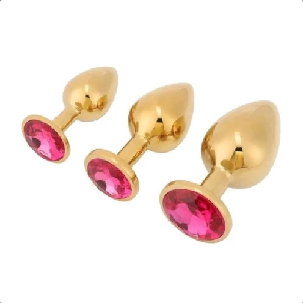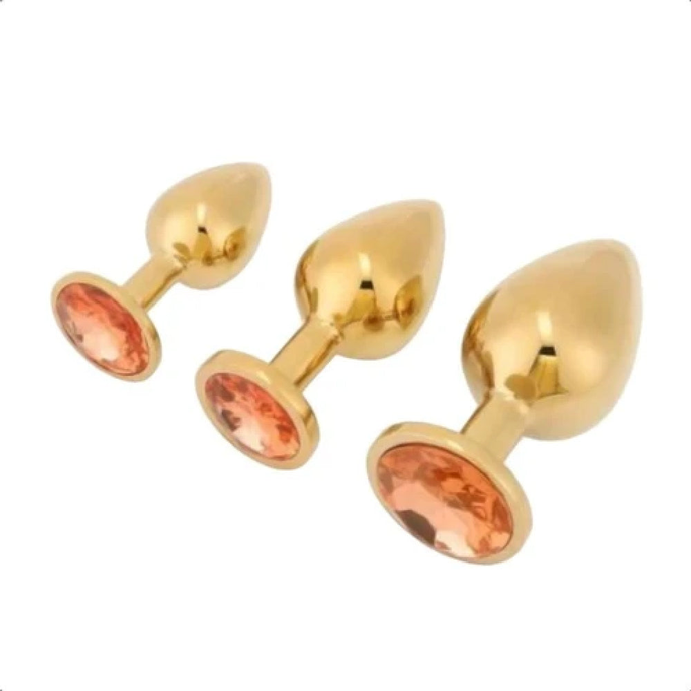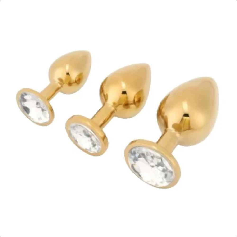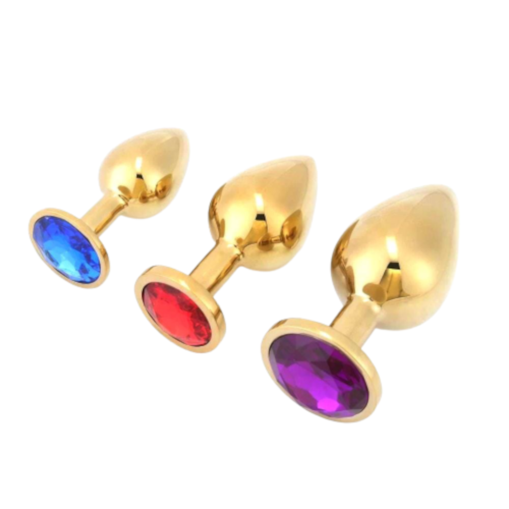This captivating set comprises three anal toys in a variety of sizes and seductive base colors. Each piece is a work of art, crafted with precision and care. The solid metal plugs exude an air of strength and dominance, while the dazzling acrylic crystal jewels add a touch of elegance and sensuality. Every item is sleek, shiny, and irresistibly alluring.