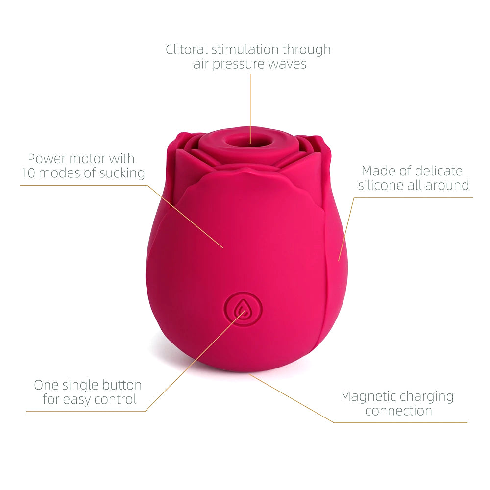 Experience blissful pleasure with the Sultry Rose Inferno, a dual-action vibrator designed to stimulate your nipples and clitoris simultaneously, awakening intense sensations and desires.
